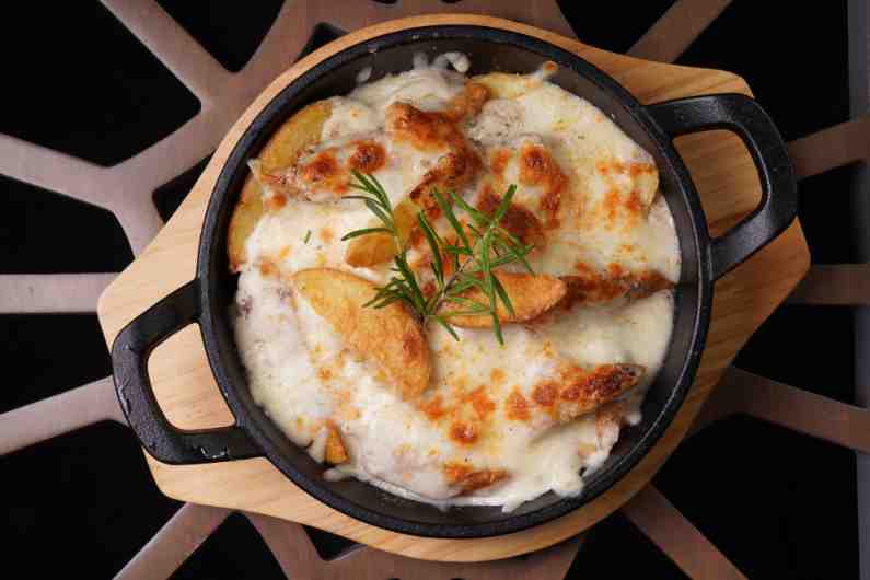potato , truffle sauce, mozzarella cheese